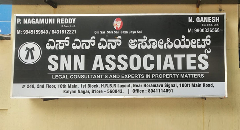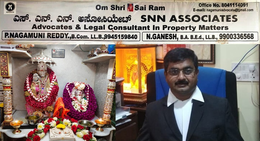 SNN Associates is an association of like-minded, passionate, dedicated and skilled professionals, who joined hands in their pursuits of delivering quality and robust legal service to their clients and have been successfully doing the same for last 20 years. SNN Associates are independent legal professionals associated with Advocate P. Nagamuni Reddy located in Bangalore, Karnataka.